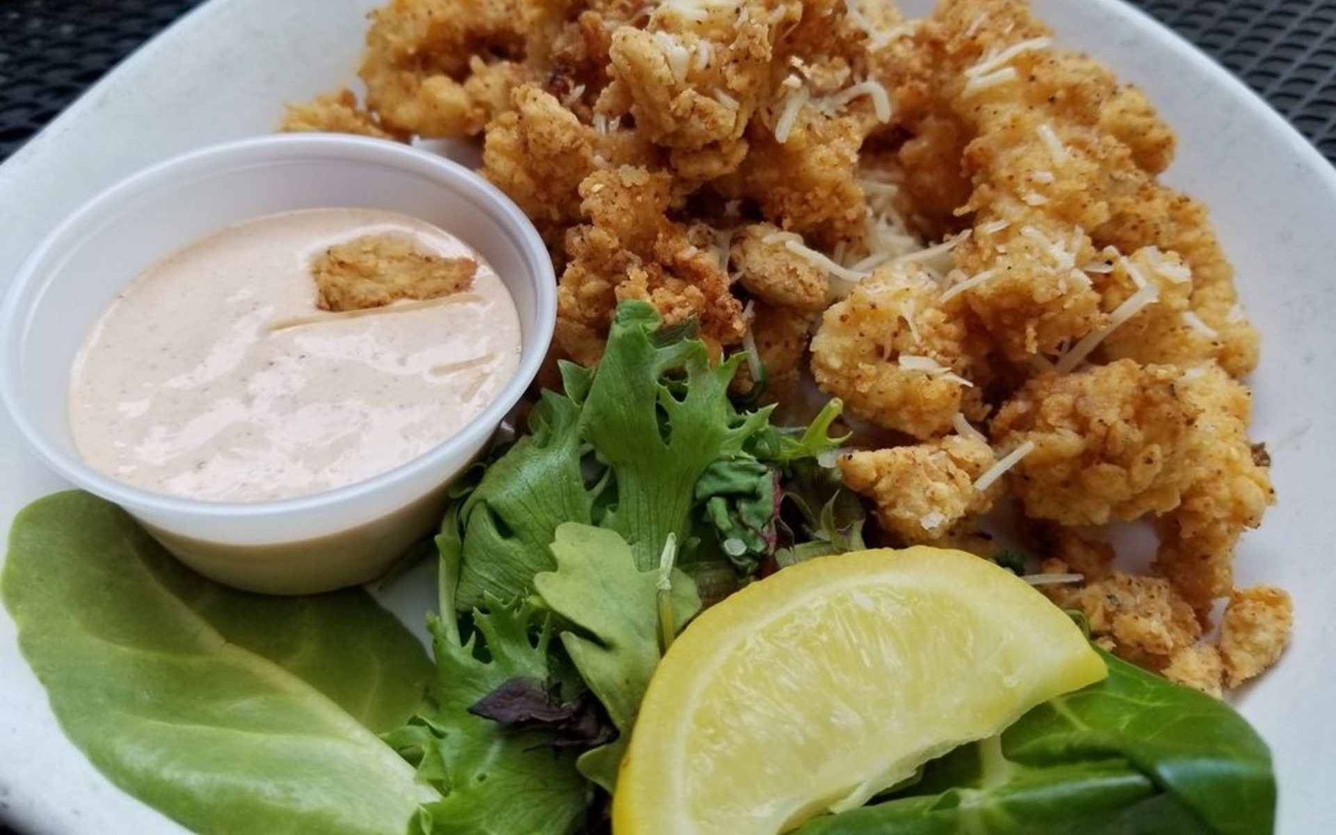 First time here.Delicious shrimp and grits.my husband got the hamburger and salad.Definitely coming back 😃